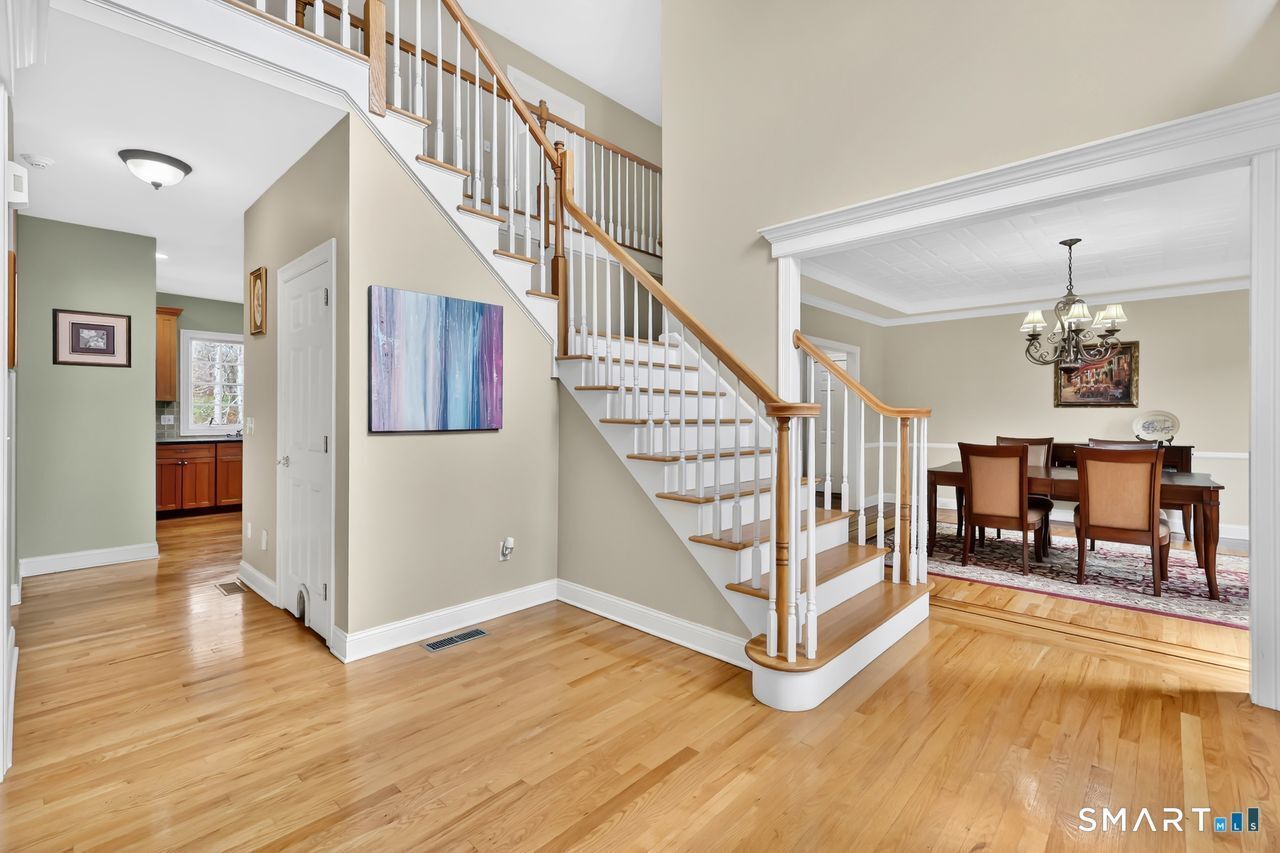 Move-in ready, Charming 2 story foyer colonial with 2.68 level acres, on quiet cul-de-sac setting! This impeccably maintained 5-bedroom, 3.5-bath home, offering the perfect blend of privacy and convenience near town and major highways. The home features an excellent floor plan highlighted by 9 foot ceilings, dramatic split staircase, hardwood floors. Spacious refreshed kitchen with spacious granite counters, center island, plenty of cabinets, double stainless ovens, new cooktop & stainless french door refrigerator. Wet bar perfect for coffee/cocktail area. Eat in Area has sliders to large deck overlooking level private yard. Kitchen flows into the fabulous family room w floor-to-ceiling stone fireplace. Convenient work from home dedicated private first-floor office/den. Upstairs, the primary suite is a true retreat with trey ceiling, double walk-in closets, luxurious full bath w separate shower and whirpool tub. The additional four spacious bedrooms offer flexible layouts, including a Jack-and-Jill setup and an en-suite guest room. Storage is abundant with additional large walk in closets in most bedrooms. 4 linen closets. Full room size second-floor laundry room w sink. Need more space? The unfinished walk-out lower level with sliders and high ceilings is ready for your personal finishing touch. Plenty of room for a pool. This turn key home is complete with a 3-car garage, generator ready, gutter guards, newer driveway. Showings Begin Monday April 6, 2026.