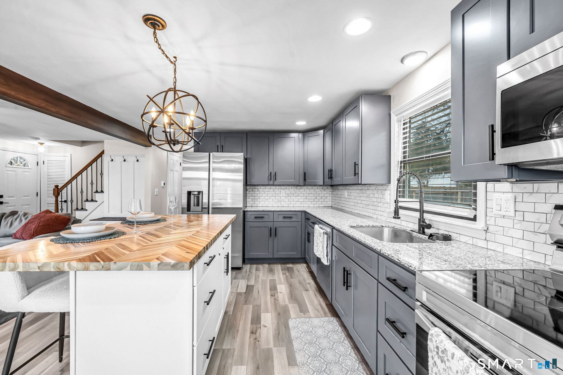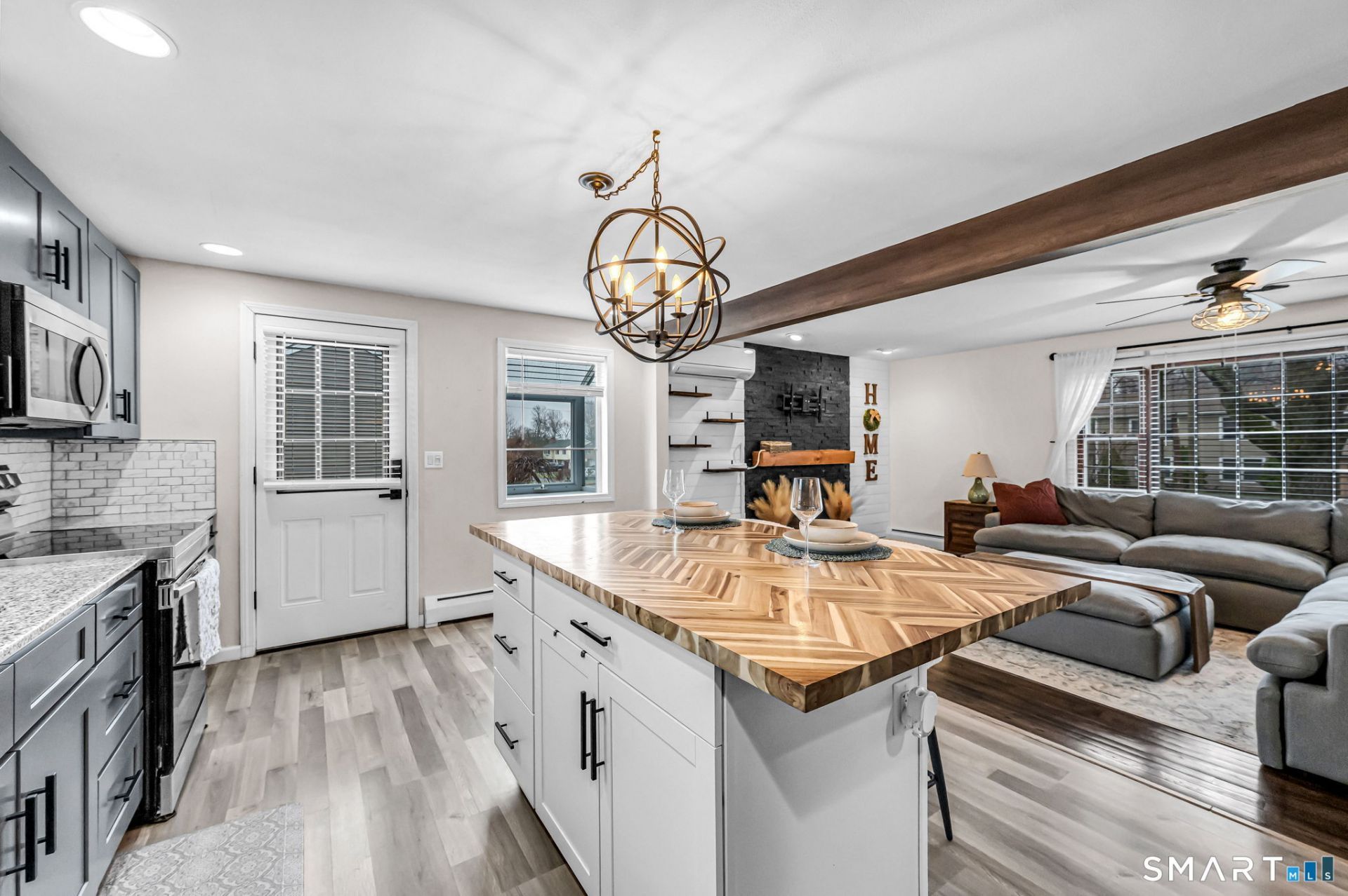 Welcome to this beautifully updated 4-bedroom, 2-bath Cape offering the perfect blend of charm, functionality, and modern style. The bright, open concept main living area features gleaming wood floors and flows seamlessly into a stunning, updated kitchen with contemporary finishes, ideal for both everyday living and entertaining. The first floor includes two spacious bedrooms and a full bathroom, providing flexible living options for guests, a home office, or convenient one-level living. Upstairs, you'll find two additional generously sized bedrooms and a second full bathroom. Natural light fills the home throughout, highlighting the clean, modern design and thoughtful updates. Step outside to enjoy the large deck, perfect for outdoor dining, relaxing, or hosting gatherings. The backyard is a nice retreat, complete with a firepit area for cozy evenings year-round. This move-in ready home offers comfort, style, and space in a desirable setting. Don't miss your chance to make it yours!