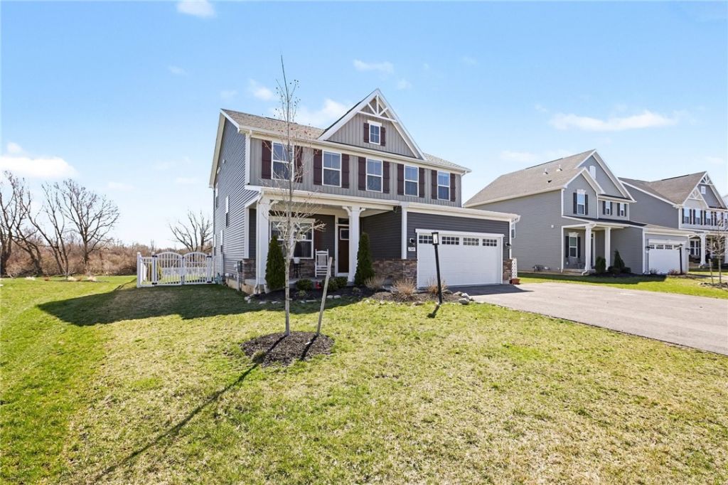 Welcome to 1749 Ackerman Way, a beautifully maintained home located in the highly desirable Canandaigua School District. This spacious property offers 5 bedrooms and 3.5 bathrooms, featuring an open concept layout ideal for both everyday living and entertaining. The bright and inviting main level includes a dedicated home office and a large kitchen complete with an island and an oversized pantry, seamlessly flowing into the living and dining areas.The finished basement provides additional living space, including a bedroom and full bathroom, perfect for guests or extended family. Enjoy outdoor living with a deck overlooking the fully fenced backyard, backing up to woods and the Auburn Trail. Additional highlights include abundant garage storage, a double-wide blacktop driveway, and generous interior storage throughout.Low-maintenance living is made easy with an HOA fee of $175/month, covering lawn care, snow removal, and garbage service. This move-in ready home offers space, functionality, and convenience in a fantastic location. Don't miss this opportunity! Delayed negotiations Tuesday April 14, 5pm.