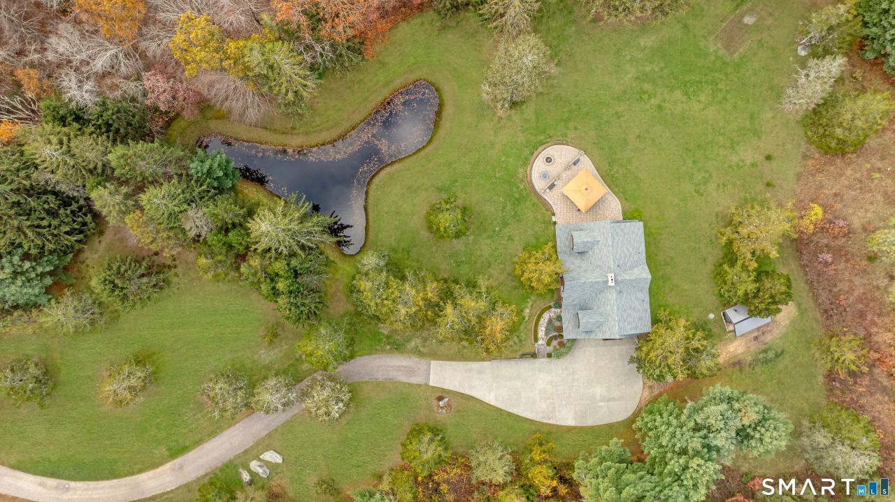 Welcome to this custom log home set on 3.5 secluded acres, offering lodge-style elegance, a private pond, and a separate cottage with rental income or in-law potential, all surrounded by a peaceful wooded backdrop. Spanning, 4,170 sq ft across three finished levels showcasing natural wood floors and an open main living area highlighted by a massive stone fireplace, creating a warm and inviting gathering space. The custom kitchen features a large island, newer appliances (2024), granite counters (2026), and opens seamlessly to the dining area. A pantry adds everyday convenience for cooking and entertaining. Adjacent spaces include a den with built-ins and a nearby office, offering flexible living and work areas. The upper level includes a primary suite with deck access, two additional bedrooms, an additional full bath, and a 4-person Master Spa hot tub. The walkout lower level offers a sitting room with a gas stove, full bath, extra storage, garage access, and a large workshop. Enjoy year-round outdoor living on the patio with a covered pavilion and outdoor bar featuring granite counters, a fire pit, and views of the private pond-creating the perfect space for entertaining, relaxing, or enjoying nature in every season. This exceptional property combines luxurious log home living, versatile outdoor spaces, and income potential in a serene, private setting.