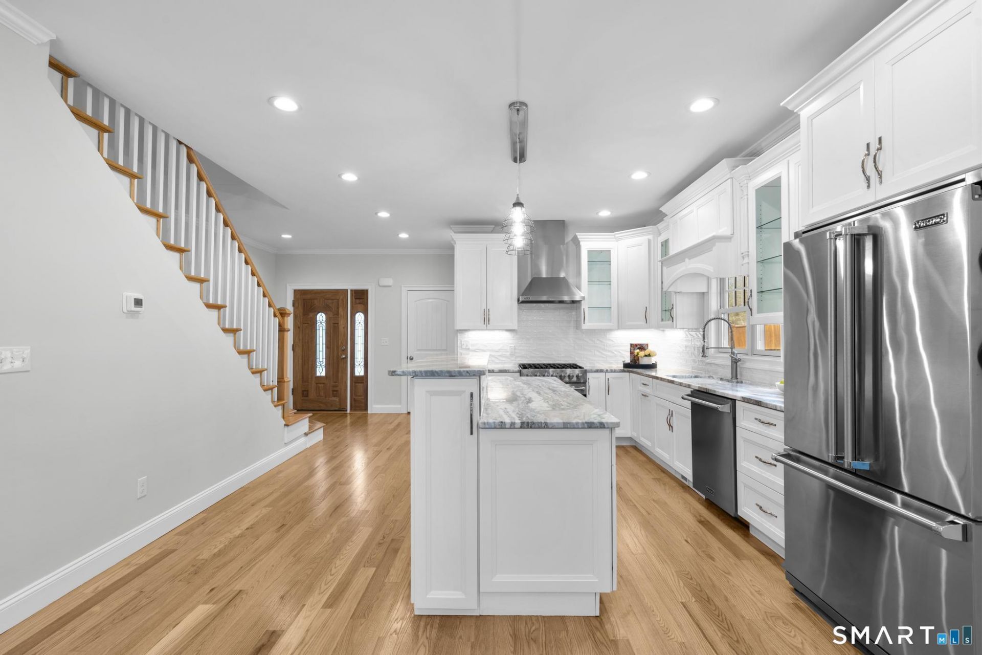 Welcome to The Landing at Guilford, a luxury townhome community offering modern design, quality construction, and low-maintenance living in one of the shoreline's most desirable locations. This well-appointed 2-bedroom residence with flexible space for a potential third bedroom features an open-concept layout with a beautifully designed kitchen complete with Viking stainless steel appliances, granite countertops, quality cabinetry, and a large center island, seamlessly flowing into the living area with gas fireplace and French doors leading to a private Trex deck. The second level offers a spacious primary suite with custom built-in closet and en-suite bath, along with a second bedroom, full bath, and convenient laundry area. Additional finished space on the third level provides flexibility for a home office, gym, or guest area. The fully finished lower level expands the living space and includes a half bath, ideal for recreation, guests, or additional work-from-home needs. Notable features include 9' ceilings, hardwood flooring, crown molding, extensive lighting, ample storage, gas heat, central air, on-demand hot water, an attached garage, and multiple outdoor deck spaces. Ideally located along Boston Post Road with easy access to Guilford Town Green, shopping, dining, and I-95, this property offers a perfect combination of convenience and comfort in a premier shoreline community