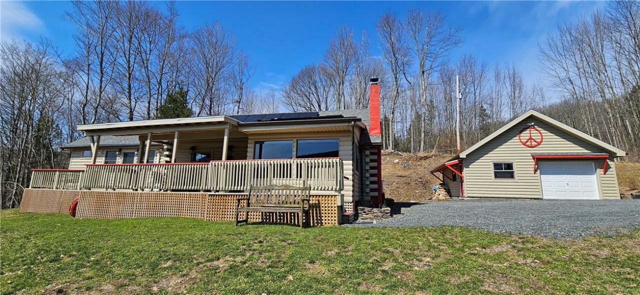 PRIVATE 3 BEDROOM 2 BATH LOG HOME ON 2 LOTS (2.35 ACS) WALKABLE TO MARGARETVILLE MAIN STREET: If panoramic mountain views and seclusion are your thing, but you like being convenient to town, this is the place for you. Originally built in 1994, the owner did a completerenovation in 2024--new kitchen, 2 updated bathrooms, added a luxurious Primary Suite, a new garage, a new heating system (splits), a new septic, a whole house generator,and (the icing on the cake!) an owned roof solar array which mostly runs the entire electric for the house. While loaded with lots of rustic interior detail, this reimagined home is also an up to date, state of the art contemporary dwelling. Details: All newly stained and painted, solid oak floors, tongue and groove pine ceilings, new laundry with pantry storage, cathedral ceiling in the Great Room, extensive wrap around windows to enjoy the view, an updateddeck and covered porch, and charming landscaping with many perennial plantings. In other words, this property has IT ALL! Just move in, relax and enjoy the easy access to all things Catskills recreational! Convenient to skiing (Belleayre, Plattekill), hiking (state trails nearby), paddling and fishing (Pepacton Reservoir 5 minutes away) and--a short walk into town for your morning latte!
