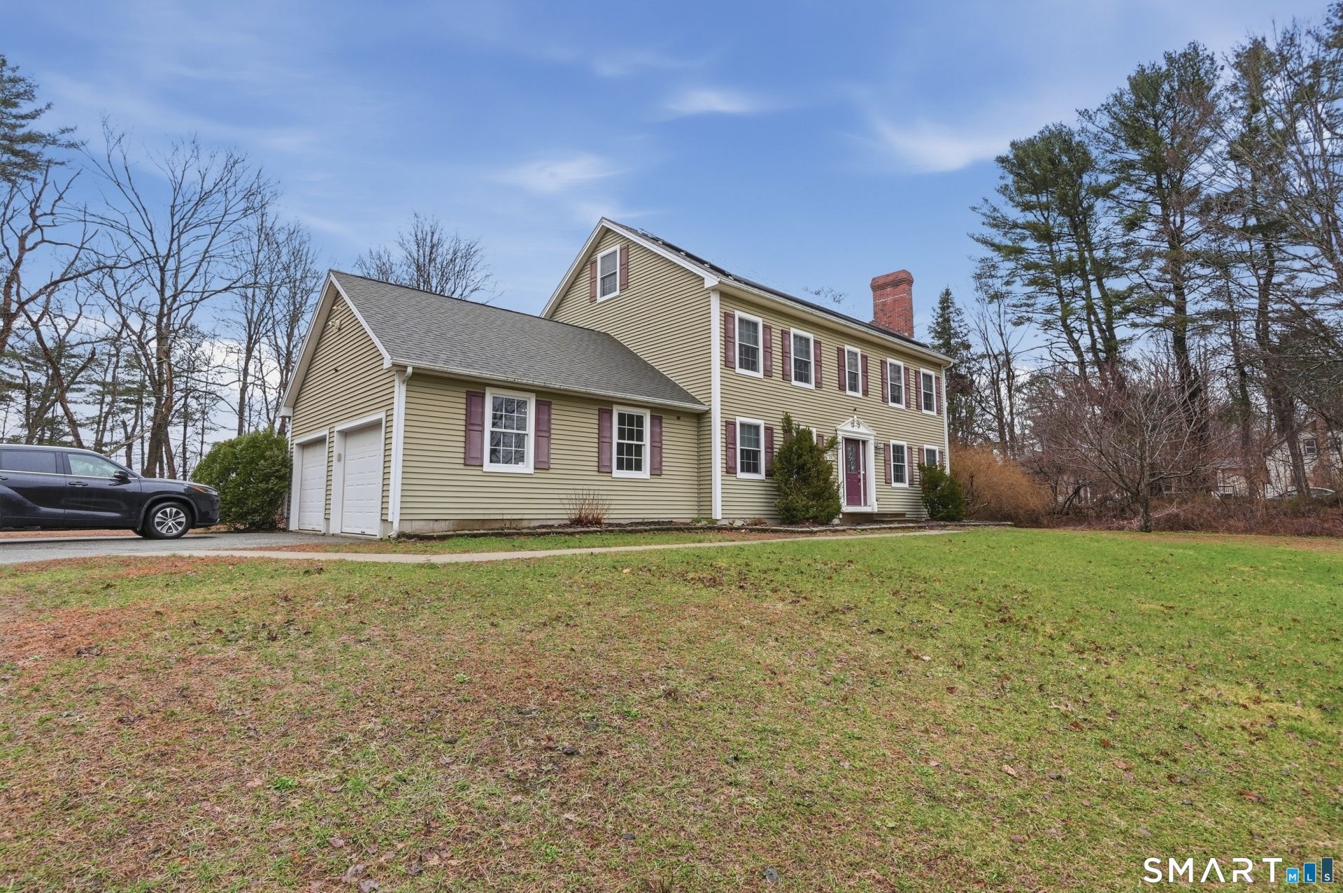 Classic Colonial charm meets modern comfort in this beautifully maintained home in Brooklyn, CT, offering three levels of sun filled living! The main level features a warm and inviting layout, including a spacious kitchen with rich cherry cabinets, stainless steel appliances, stylish backsplash, a large island, and a dining area with sliders leading out to the deck-perfect for indoor-outdoor living. The living room showcases hardwood floors, a cozy brick fireplace, and elegant French doors that open to a bright sitting room, while the formal dining room is accented with a classic chair rail. Upstairs, you'll find three well-appointed bedrooms, including a generous primary suite with a walk-in closet and en suite bath. The finished walk-up attic provides a third level of living, complete with a bonus room and fourth bedroom-ideal for guests, a home office, or hobby space. Set on 1.3 acres, the outdoor space features a tiered deck, above-ground pool, and plenty of room to relax or entertain. An attached garage and ample off-street parking complete the package.