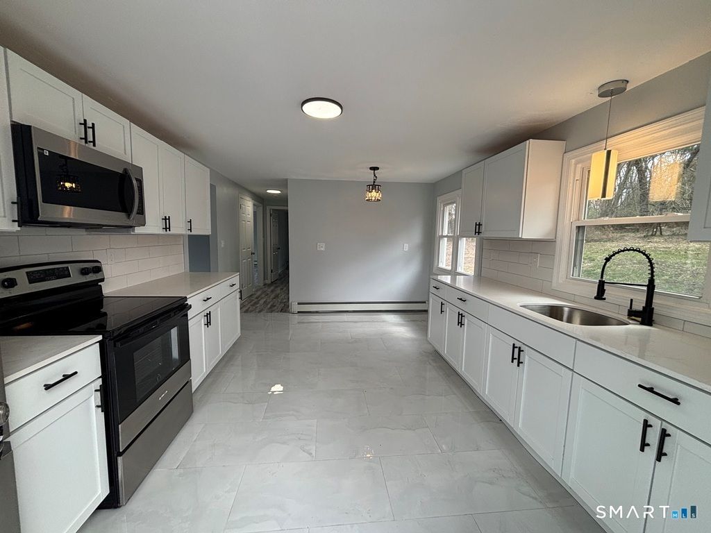 Come see this beautifully renovated Cape Cod-style home featuring three bedrooms, one and a half bathrooms, and 1512 square feet of living area. Situated on a lot just shy of an acre in a tranquil neighborhood, this property welcomes you with fresh paint, new flooring, and an abundance of natural light that creates a cozy and inviting atmosphere. The kitchen is equipped with quartz countertops, shaker-style cabinets, a tiled backsplash, and brand-new stainless-steel appliances. The first floor includes a living room, dining room, and conveniently, a bedroom along with a full bathroom. Upstairs, you will find two additional spacious bedrooms and a half bathroom. The expansive basement provides plenty of storage options or the potential for additional living space. This property is ideally located near Scantic River State Park, which offers picturesque views and walking trails, as well as being close to highway access, Bradley Airport and Massachusetts, making it ideal for commuters. Recent improvements include a new well pump, septic system, water heater, electrical system, and plumbing system. Don't miss the opportunity to schedule a showing and make this your new home today!
