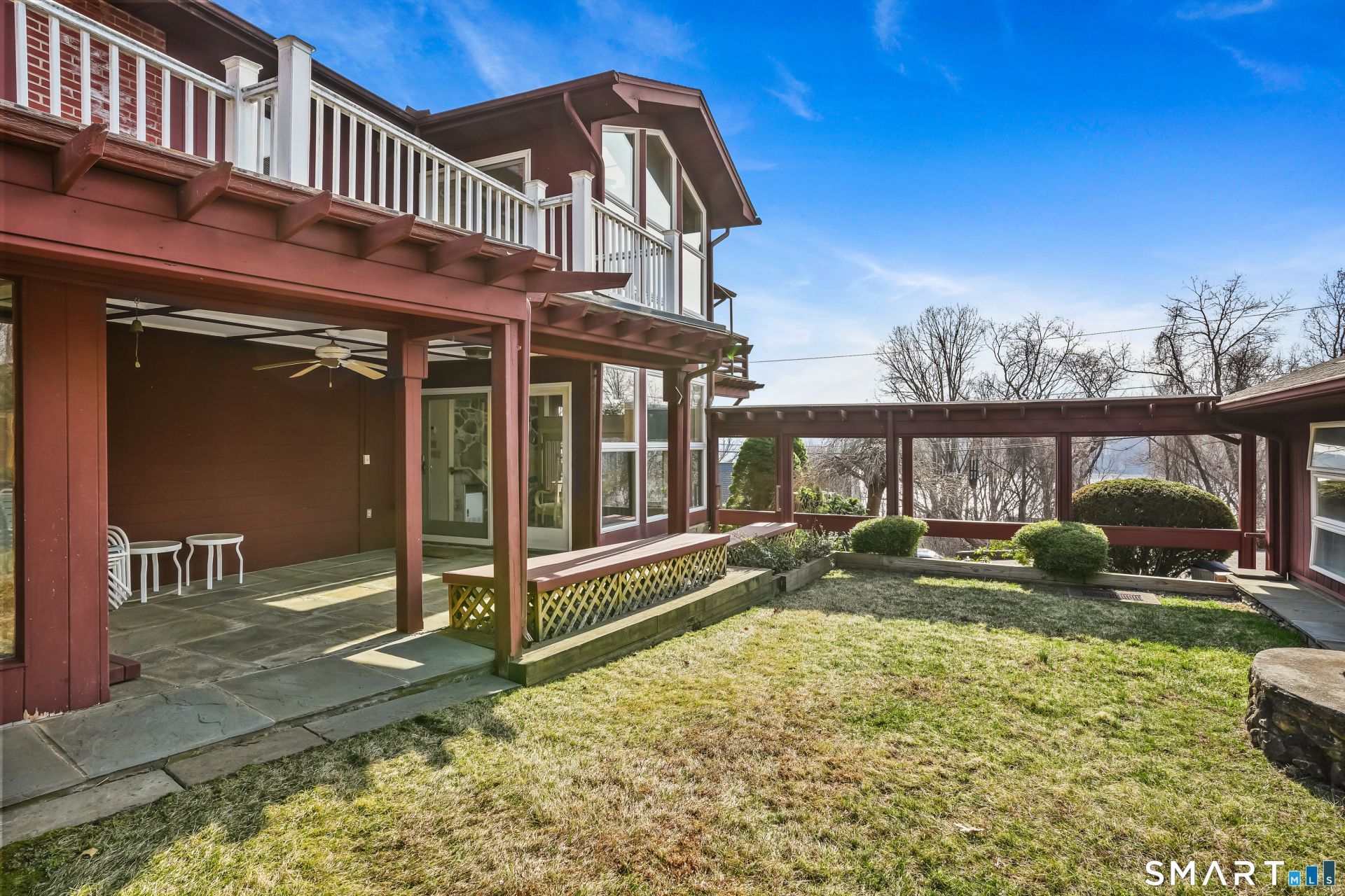 Discover this spacious and unique home in the highly sought after Candlewood Shores private lake community. Offering 4 bedrooms, 3 full baths, and 2 half baths, this property blends comfort, character, and a lake lifestyle. Enjoy western lake views and sunsets and relax on one of the three patios available-perfect for entertaining. Just a short stroll brings you to the community's private sandy beach, ball fields, and playground. Inside, an impressive foyer opens to a warm and welcoming living room with one of two fireplaces, gleaming hardwood floors through out, all solid oak doors, a remodeled kitchen (2 solid oak pocket doors for privacy in kitchen), high ceilings and an expansive dining/family room with oak custom cabinetry built-ins. Additional main level spaces include a walk-in pantry, office, bedrooms with walk-in closets and full and half baths. Upper level includes two primary suite bedrooms with sliders to decks and attic storage. The fully finished lower level adds even more versatility with a fireplace, full bar, and generous storage. A detached two car garage with an attached greenhouse complements the one car under garage with direct lower level access. This home is located on a double lot for additional space, privacy and tranquility. Conveniently located near shopping, dining, and I84. Tax District Annual $871.73, No HOA.