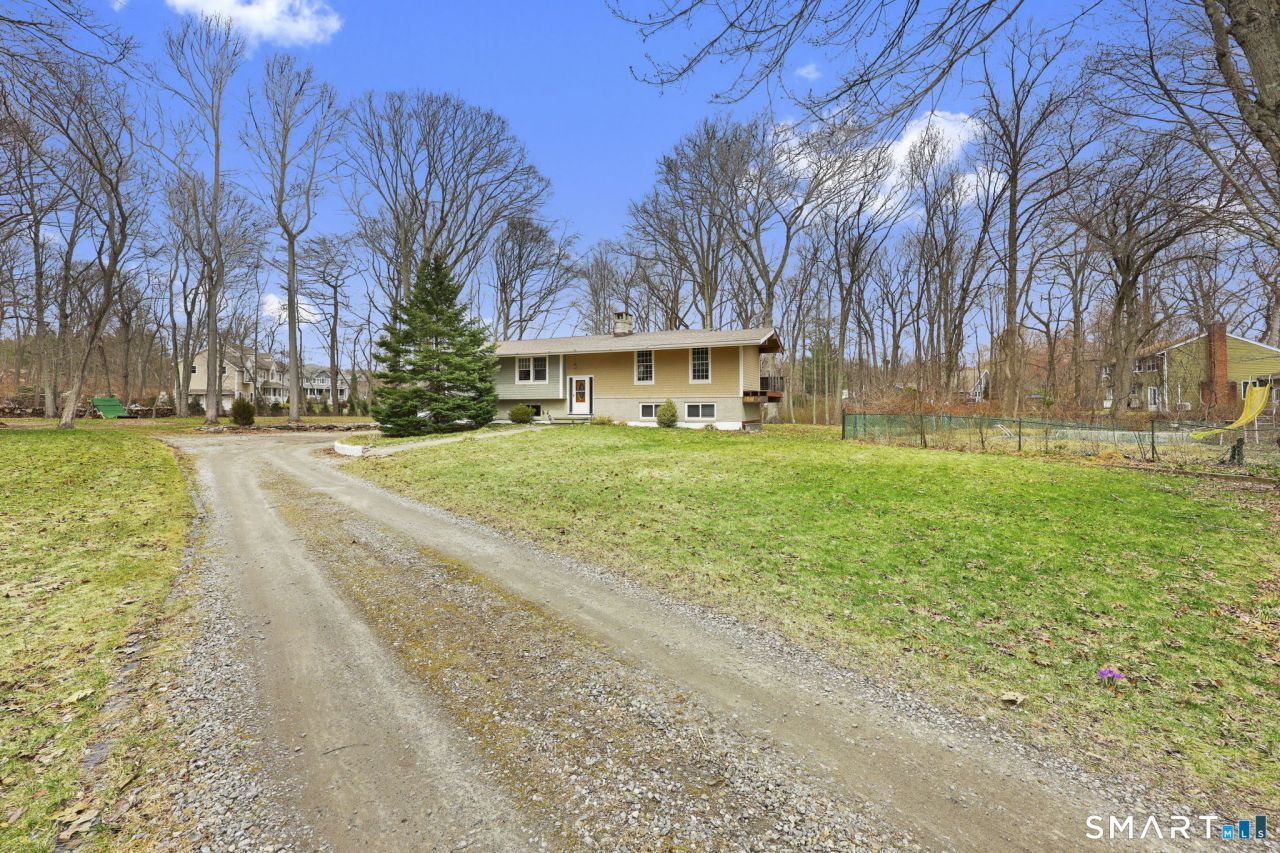 Tucked away on a private, oversized lot (2.8 acres) in the highly sought-after Nichols neighborhood, this hidden gem offers over 2000 square feet of bright and inviting living space. Set back from the street and surrounded by mature trees, the home provides a peaceful, "in-the-woods" feel while still being conveniently located near schools, shopping, parks, library and all major routes. Inside, you'll find a sun-filled, open layout featuring a vaulted wood ceiling living room with custom built-ins and a stunning stone fireplace-perfect for cozy gatherings. The spacious eat-in kitchen offers plenty of room for everyday living and entertaining, while three generously sized bedrooms and an oversized full bath provide comfort and flexibility. The lower level expands your living options with a large family room and second fireplace, easily convertible into a fourth bedroom, guest space, or ideal in-law suite. The beautifully updated full Bath adds a touch of luxury with a tiled walk in shower, Shipplap walls and radiant heated floors. Additional highlights include a new furnace (2024), hardwood floors throughout an oversized garage, and a large yard overlooking a serene brook with an in-ground pool (being sold as-is), offering great potential for outdoor enjoyment. A rare opportunity to make this home your own private retreat in a prime location!