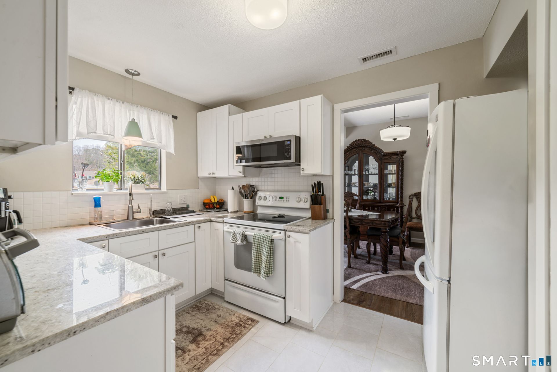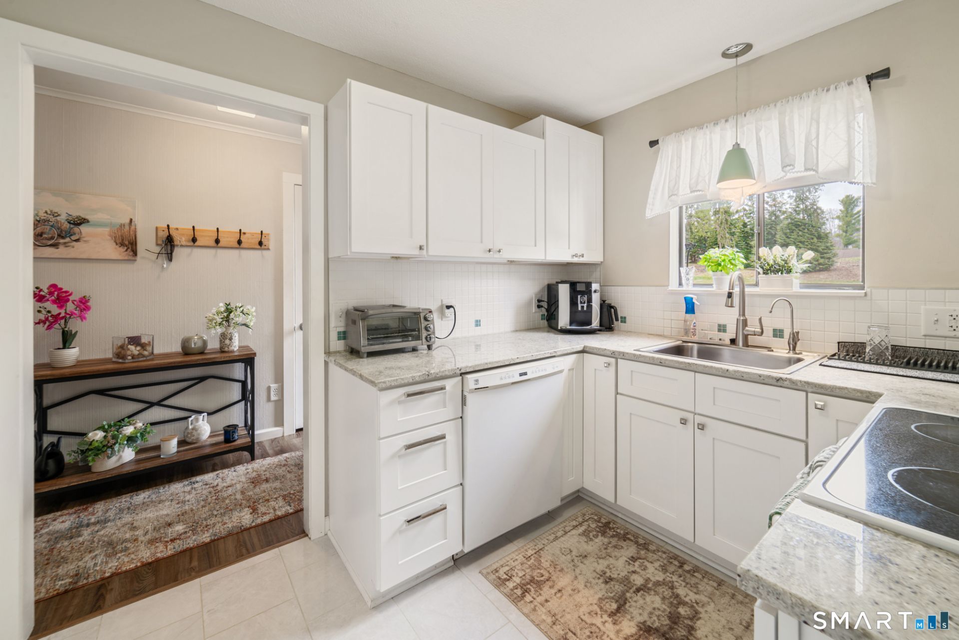 Welcome to easy, maintenance-free living in the award-winning 55+ community of Heritage Village! This beautifully updated, move-in ready 1-bedroom, 1-bath Carriage House-style unit is ideally situated in the heart of the community, just moments from Pool 1 and the community's many activities. Enjoy a bright, inviting interior featuring thoughtful updates throughout. The kitchen, bathroom, flooring, electrical, interior doors, and baseboard molding were all renovated in 2020, creating a modern, cohesive feel. Additional improvements include a heat pump and water heater installed in 2021, ensuring year-round comfort and efficiency. Step outside to a private, wooded side yard-perfect for relaxing or enjoying the peaceful surroundings. The location is truly exceptional, with close proximity to the shops and restaurants along Heritage Road, as well as an array of recreational amenities including tennis courts, multiple pools, art studios, a library, and scenic walking trails. Whether you're looking to stay active or simply unwind, Heritage Village offers it all. Nothing to do but move right in and start enjoying the lifestyle!