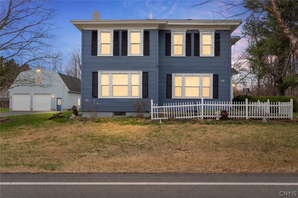 This charming 4-5 Bedroom home is a must see with lots of room to roam inside and out! This home offers Spacious Clean Country living while being conveniently located minutes from the village of Baldwinsville and the sought after Baldwinsville School District. This home features a large delightful eat in Kitchen with a separate spacious dining room, cozy living room with a woodburning fireplace, a fabulous family room and lets not forget the master suite with first floor laundry. The 2nd floor offers 3 bedrooms, Full Bath and an office/playroom/gym or 5th bedroom if you desire. So many possibilities in this home, the potential is endless, this one is a must see. Some fresh paint, newer roof (under 7 years), newer furnace and hot water heater, some new windows, and newer leach field. The enclosed porch/3 season room, overlooks the patio providing more serenity for some peaceful me time or an escape room. This home also has an outside large 30x30, 2.5 bay detached garage, with a 2nd story loft offering plenty of storage as well as a workshop or hobby room. This Beautiful property is a rare find that offers an amazing yard with beautiful flowers, gardens and a pond out back. It has a Circular Driveway which is convenient. This home is Move In Ready and Ready for new owners to enjoy! Perfect for a family seeking country living, including all their furry family members to make new great memories! Plenty of room to play and grow for everyone! This home wont last! Show and Sell!