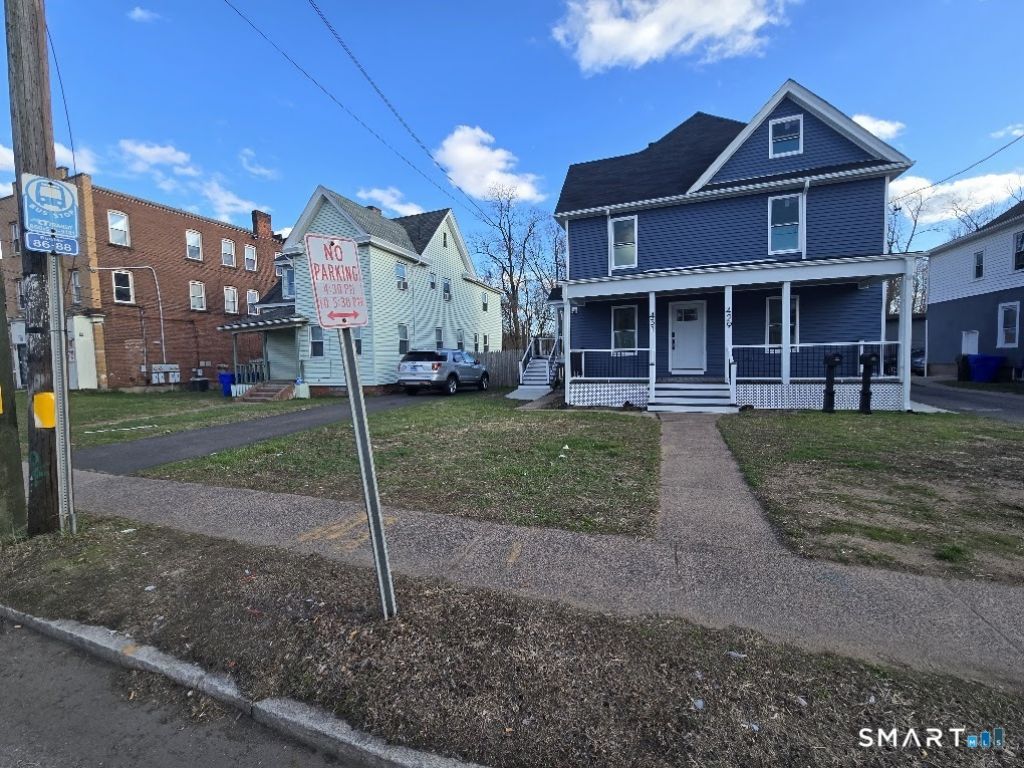 Opportunity knocks with this 2 family home, (with potential of becoming a 3 family!) The B1 Zoning allows for commercial OR residential use! The heavy lifting has been already been done in this renovation project, now being sold AS IS, for the purchaser to complete the final stages, then sit back and collect the income! So much work and expense has already been completed, with striking attention to detail and quality. New siding, roof, gutters, stairs, porches with handrails; new windows, doors, camera system, and Smart locks. New electrical wiring for entire house, including 3 laundry spaces, and a new service panel on each floor. 3 new Combi boilers, new gas lines for all kitchens and laundry. Plans are approved for a 3 bedroom, 1.5 bath unit on the first floor; The 2nd floor is currently a large, bi-level apartment, with a total of 5 beds and 2 baths; (2 beds on 2nd floor, 3 beds on the 3rd floor.) A third unit could be created instead by adding a kitchen to the 3rd floor! Basement walls are framed for laundry area, utility area, a bathroom, and space for an office, ideal for commercial use. The 1st floor is nearly complete; an owner/occupant could soon move in, and work on finishing the income-producing space upstairs. The property has a stop on a commuter bus line in front! The back yard has space for additional parking, and a large trailer that could also be renovated as a "Granny pod", living space for owner, or just storage. The possibilities are endless for this gem!