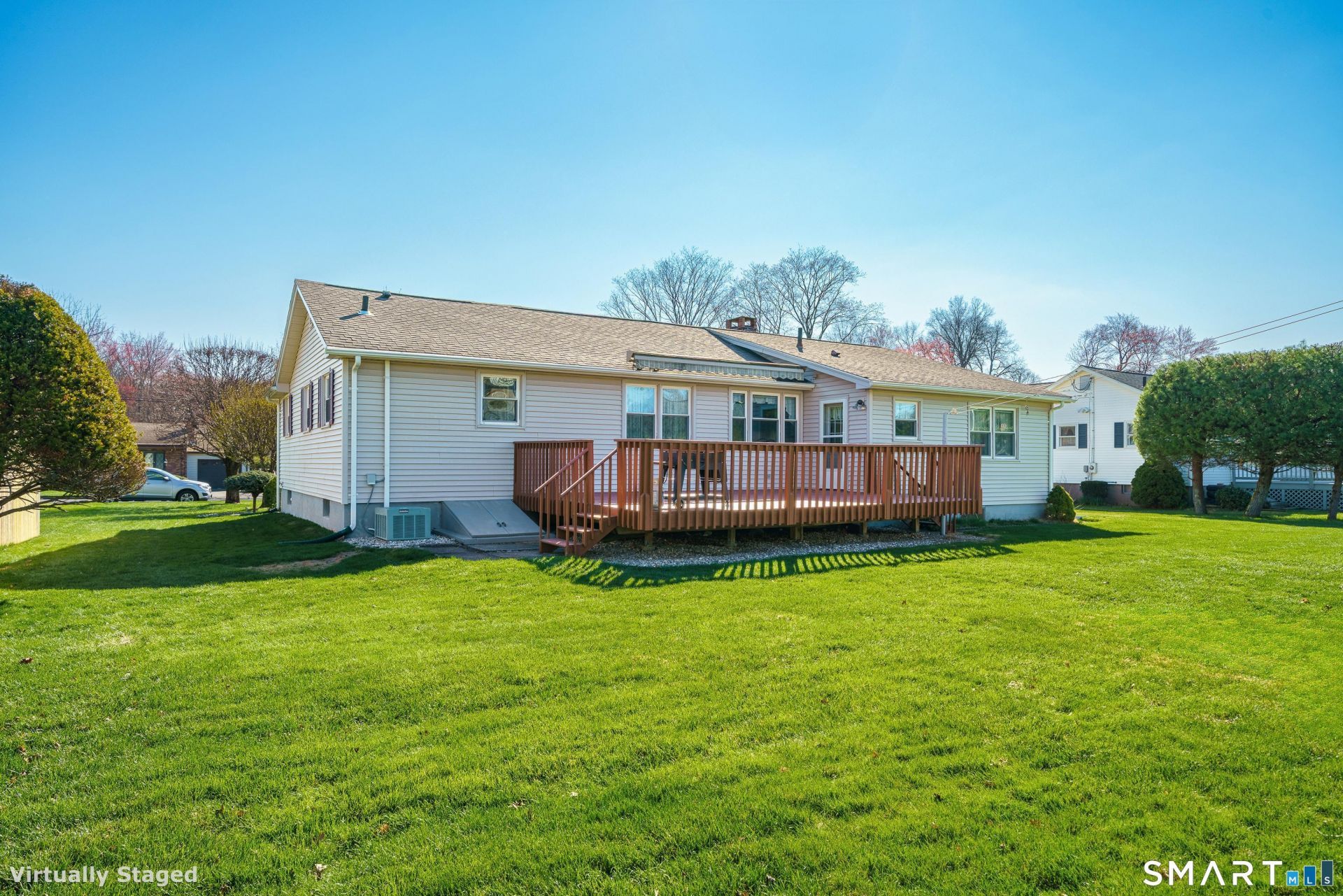 The Perfect, Pristine Ranch with a Bonus Space That Shines! This oversized Ranch offers 1,521 sq ft, 2 Bedrooms, 1.5 Baths, 1-car attached garage, and a peaceful setting. Step into the front foyer and into a sunlit living room featuring a classic wood-burning fireplace and carpet (Hardwood under), perfect for relaxing or entertaining. The layout flows seamlessly into the dining room and a spacious eat-in kitchen with stainless steel appliances, granite countertops, plus a new refrigerator and oven/range. The standout "cherry on top" is the 16'x15' Bonus Room, ideal as a Family Room, library, Gym, or Home Office. Down the hall are two generously sized bedrooms, including a large Master Bedroom with it's own half bath, along with an updated full bath with a walk-in shower with grab bars and a built-in, fold-down seat. The mostly finished lower level offers great additional space (just add heat), a laundry area with new washer and dryer, a double sink, two cedar closets, and abundant storage. Enjoy a cozy 15'x7' front porch for morning sunrises and a 22'x16' rear deck with an Eclipse retractable awning/shading system, overlooking a flat, perfectly sized backyard with a storage shed. Features include central A/C, gas heat, new gas boiler & gas hot water heater, Hardwood, vinyl siding and windows, generator hookup, whole house fan, and city water/sewer. These sellers have invested over $22,000 in improvements over the past 3 years. Move right into the home you've been waiting for!