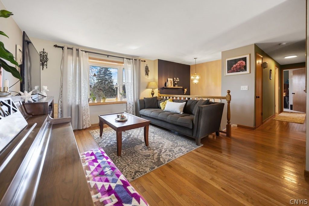 Spacious and well-maintained split-level in a desirable Liverpool location! This 3-bedroom, 1.5-bath home offers a flexible layout with over 1,500 sq ft plus a finished walkout lower level. Bright and inviting living room flows into a formal dining area and eat-in kitchen, perfect for everyday living and entertaining. The lower level features a comfortable family room along with additional space ideal for a home gym, office, or playroom. Enjoy hardwood floors, central air, and first-floor laundry for added convenience. Step outside to a deck overlooking the backyard-great for relaxing or hosting. Attached garage, blacktop driveway, and shed provide plenty of storage. Situated on a neighborhood street in popular area. Move-in ready and full of potential-don't miss this opportunity!
