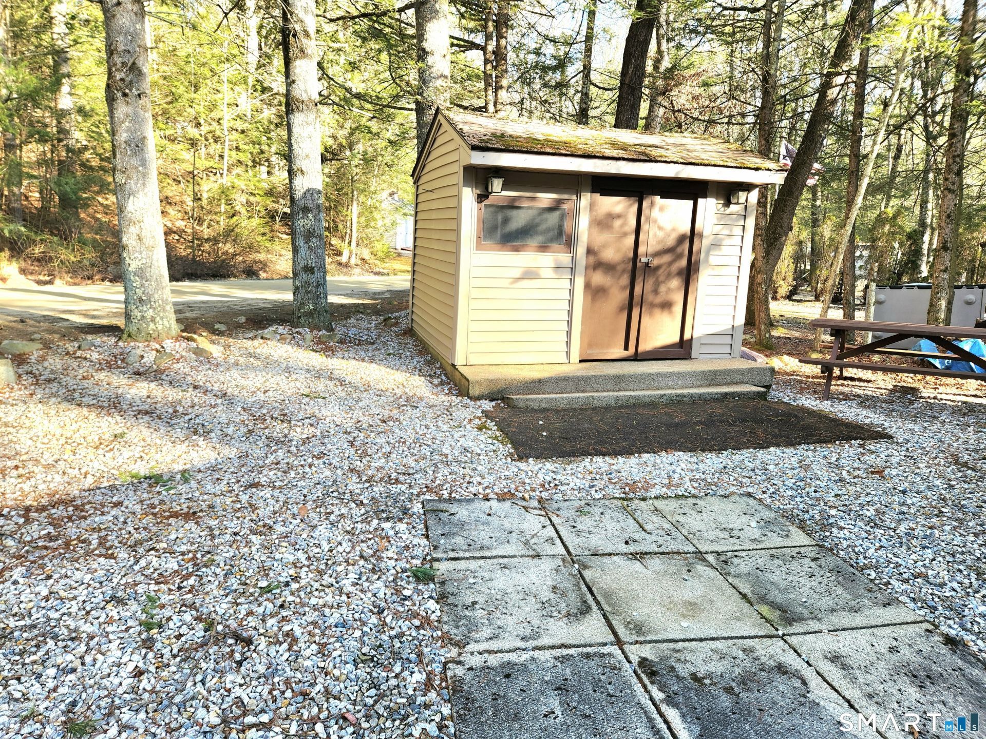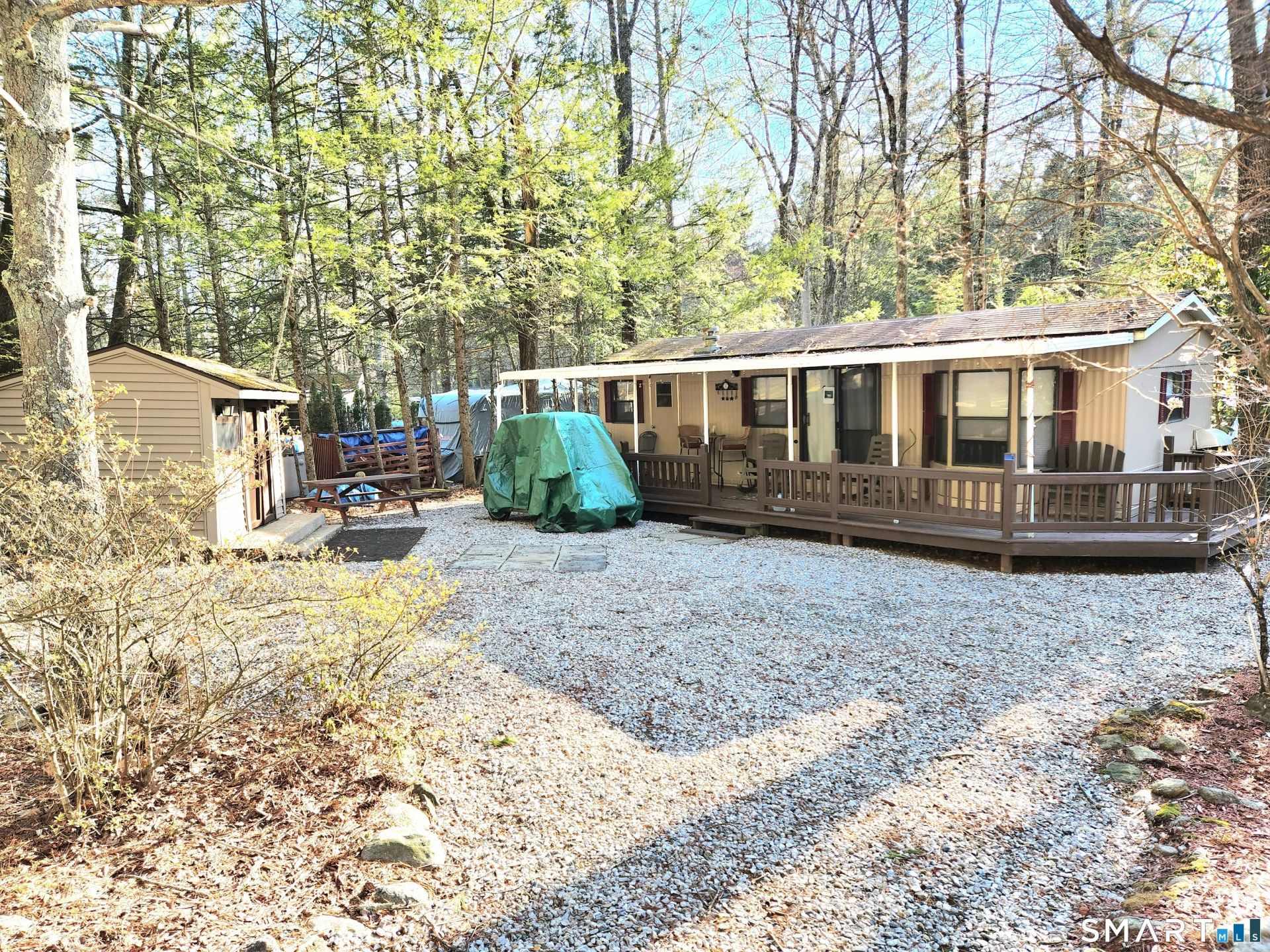 Welcome to Sun Valley Camping Cooperative, the perfect seasonal getaway in nearby Stafford Springs with a picturesque lake with beach, full time restaurant/bar, seasonal entertainment & activities, disc golf, bingo, horseshoes, bocci, shuffleboard, karaoke, koi pond and more! Plenty of options for relaxation and recreation. Step into summer bliss with this 1988 Mallard Park Model, perfectly situated on a level corner lot just a short stroll to the beach-or hop on your included Club Car golf cart and ride there in style! This charming package also features a paver patio, picnic table, and a spacious wooden shed for all your storage needs. Unwind on the full-length covered deck, ideal for your morning coffee, evening meals, or simply relaxing with friends. Inside, you'll find a cozy rear bedroom with a roomy closet and queen bed, a full bath with tub and shower, and a bright, comfortable living room with a corner TV and sliders that open to the deck. The eat-in kitchen is open and airy, with full-size appliances, a double sink, and a sunny window nook-perfect for your table and chairs. With abundant windows letting in natural light, this happy little summer retreat is ready to welcome you. Add a little refresh and your personal touch, and it can easily become your perfect getaway! Get ready to start enjoying life at Sun Valley! No financing available for seasonal properties, must be personal loan, HELOC or cash only.