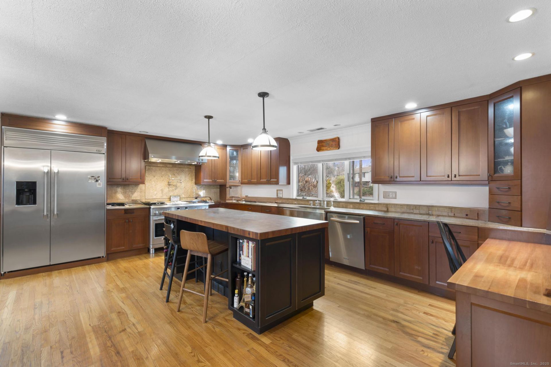 Welcome to 57 Gray Rock Rd, an exceptional ranch-style home set on a peaceful 0.85-acre lot in one of Trumbull's most desirable neighborhoods. This spacious property offers approximately 4,016 sq ft of versatile living space, including 4 bedrooms and 2 full bathrooms on the Main Level and 1 bedroom and 1 & 1/2 bathrooms in the lower-level In-Law Suite. The heart of the home features a beautifully designed kitchen, while the family room's brick fireplace and built-ins create a warm gathering space. The layout includes both a main-level living area and a walk-out lower-level suite, complete with its own kitchen and patio overlooking the backyard - perfect for extended family or guests. Outdoor amenities provide a serene retreat with lush landscaping, a tranquil koi pond, and a babbling brook. An above-ground pool with a surrounding deck adds endless summer enjoyment during the day and an outdoor theater for festivities day or night. This home also includes an outdoor kitchen for you to enjoy, complete with a stone fire pit. During the spring and summer months property is full of life with Peonies, Azaleas, Tulips, Daffodils, Hydrangea, Lilacs, Hyacinths, Spiderwort, Orange Day Lily, Asian Bleeding Hearts and also a Flaming pink Love Tree that's in front of the home. This is resort type living and with that theme property also features New Solar Panels with a Tesla Battery Backup and EV Charger for Off-Grid Power. This property is designed for both relaxation and entertainment.