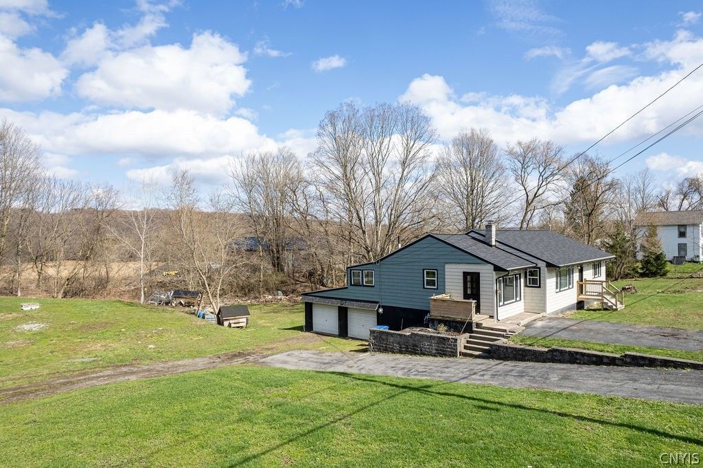 Delayed showing until Saturday 4/11/26 at 8am. A FLAT RANCH! Come see this updated, move in condition home. 3 Bedrooms, 2 baths (tax records show 1.5 baths but the bath on the lower level is a full bath) in Camillus, in West Genesee Schools. Hardwood floors, large eat in kitchen with granite countertops, a 3 season porch with wood burning stove. Lower level family room or could be an additional bedroom, walks out onto a covered pad and large 1.23 acre wooded lot. Very convenient location less than 10 minutes from the heart of Camillus, 12 minutes to Destiny USA Mall, 20 Minutes to Skaneateles, 25 minutes to Auburn. Lots of a additional storage, laundry and a work shop make up the unfinished portion of the basement.