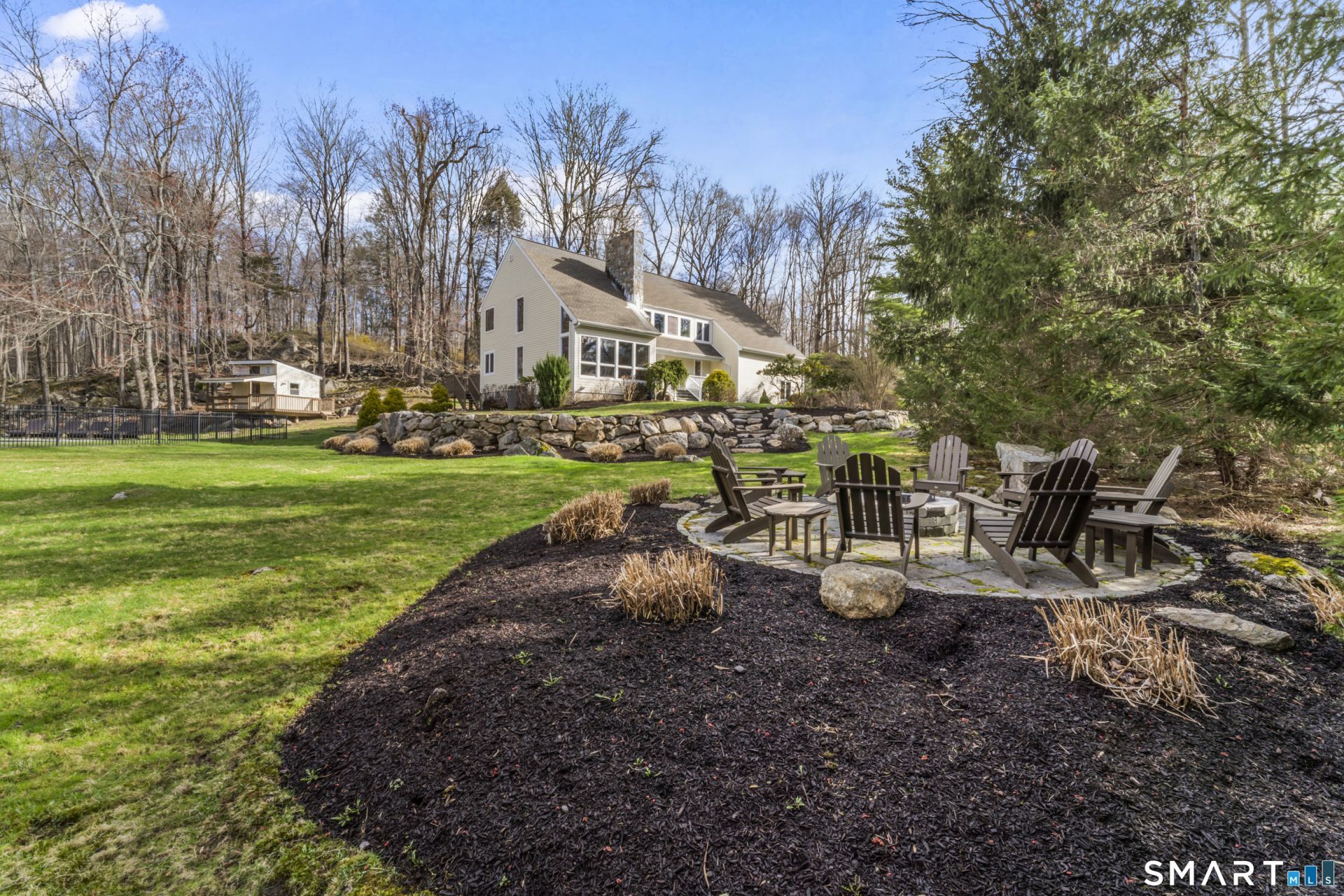 CONTEMPORARY RETREAT IN LOWER WESTON. Set on over two private acres in coveted Weston, this timeless Contemporary offers beautifully proportioned, light-filled living spaces designed for both relaxed everyday living and elegant entertaining. A gracious foyer welcomes you into the home, where a dramatic sunken living room with soaring vaulted ceilings and a striking stone fireplace creates an inviting gathering space filled with natural light. The dining room and chef's kitchen line the rear of the home, each opening through French doors to the expansive deck-creating a seamless flow for indoor-outdoor entertaining and gatherings overlooking the private backyard and pool. Privately tucked away, the family room features a gas fireplace and connects to a charming sunroom, offering a comfortable retreat. The upper level offers four generously sized bedrooms and well-appointed baths. The serene primary suite serves as a peaceful sanctuary, featuring an oversized bedroom, private bath, and walk-in closet. Additional highlights include a finished basement with ample storage, generator, invisible fence, security system, fire pit and pool shed. Nestled in a picturesque lower Weston neighborhood, this property offers exceptional privacy and natural beauty. With top-rated schools and convenient train access to NYC, the home offers the perfect balance of country living and everyday accessibility.