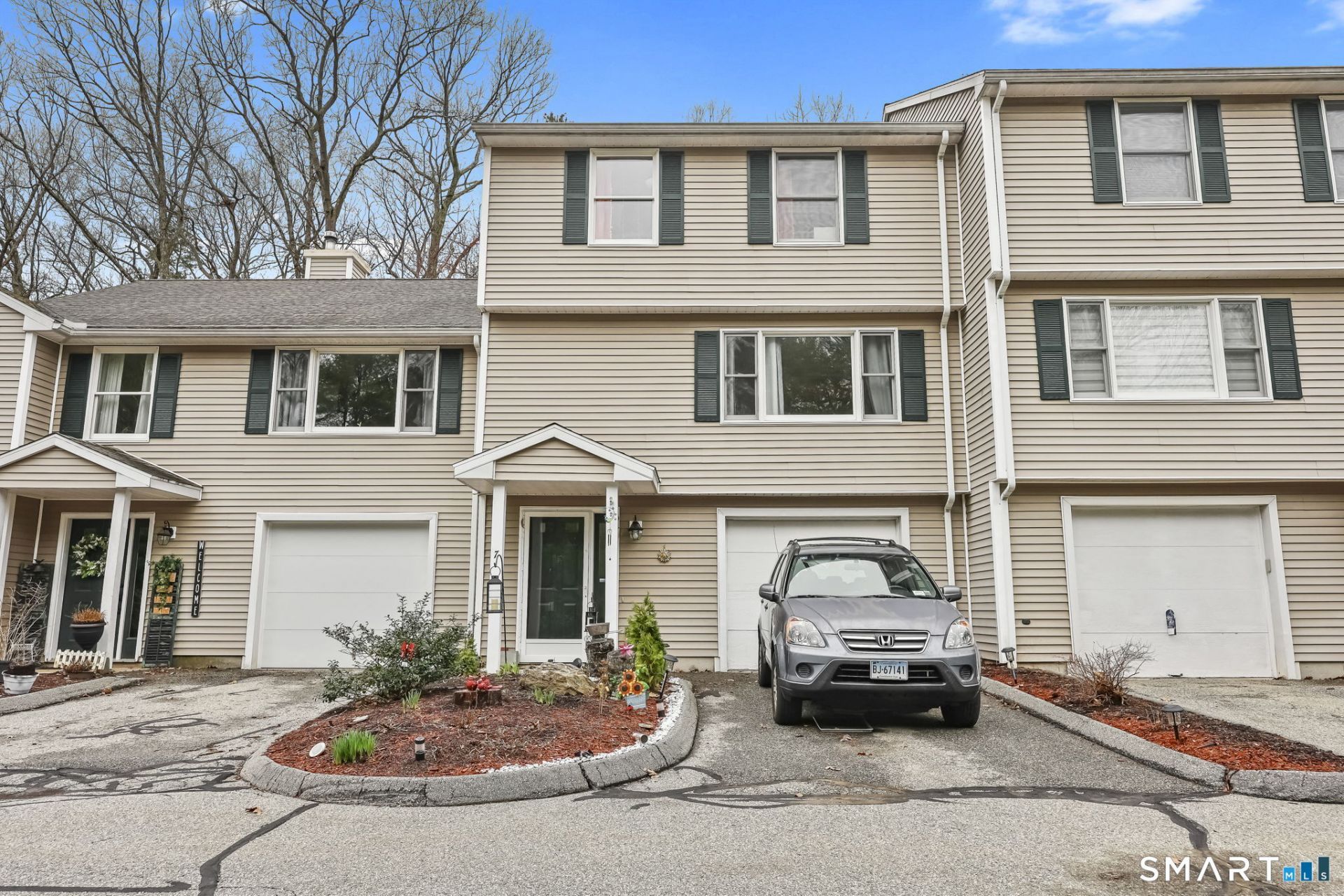 Rare opportunity for low-maintenance living in highly desirable Sachem Village! This beautifully cared-for 2-bedroom, 2.1-bath townhouse offers numerous updates, including a new A/C unit, furnace, and water heater for true peace of mind. Enjoy the convenience of an attached garage plus two additional assigned parking spaces. The entry-level features a laundry area and a generous storage room with direct access from the garage. The main level offers a fully renovated kitchen with stainless steel appliances, granite countertops, cherry cabinetry, and a full pantry. The dining room opens to a private deck, perfect for grilling or relaxing in the quiet outdoor setting. The bright, open living room features newer carpeting and excellent natural light. Upstairs, you'll find two spacious bedrooms, each with its own full ensuite bathroom. Additional highlights include a central vacuum system, abundant closet space, and thoughtful storage throughout. Ideally located near Route 2 with easy access to Lake Terramuggus, local parks, and area amenities. Highquality, freshly applied interior paint offering a bright, modern feel. This well-maintained unit is move-in ready