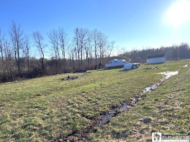 Building site!!! 3.4 acres with concrete sonitubes already erected to set your mobile home on if you are looking to put a manufactured, mobile or doublewide on the land!! Or build a stick-built home directly on the land, the lot is large enough. The lot is cleared and an older garage with driveway already exists. There is 800' feet of road frontage. The old boat, camper and utility trailer will be moved out prior to closing. The old houseboat has the option of staying if a buyer should choose to keep it. There is currently an older gentleman that frequently stays at the hunting shanty at the far end(east end) of the property. He has life use of the structure. The structure has no water, sewer or electric, however there is electric available to connect to, there is already an electric pole there with meter and an outlet, it simply needs to be powered up if a new buyer is ready to run electric after building. A buyer can section off the tiny piece of land with the cabin/shanty on it and not take it or they can keep it and allow the older gentleman to stay there. Buyer's preference. Chautauqua Lake School District!
