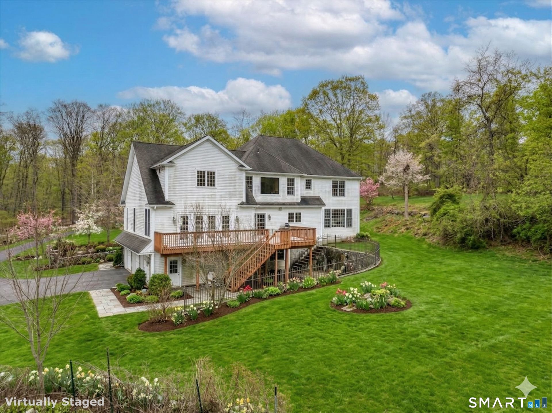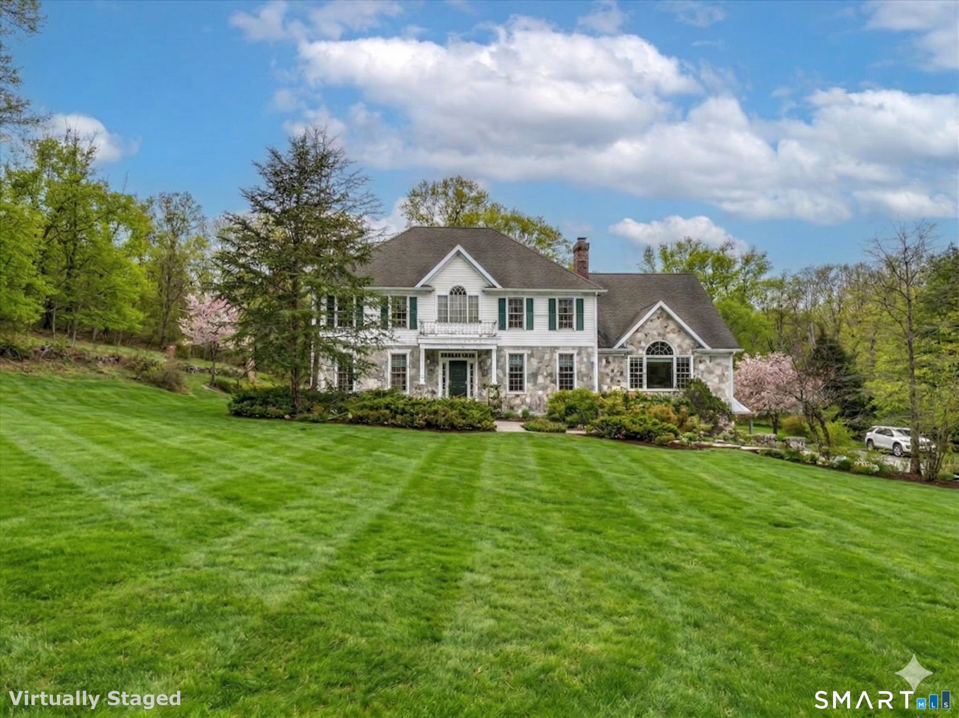 Set on 3+ acres,well-appointed Colonial Style Home custom built in 1999,offering 3,802 sq ft and +/-1,500 sq ft of fully finished walk-out Lower Level. Original owners. Custom built stone walkway leads you to the front door, opening up to an elegant two-story Foyer, set with granite tile. Hardwood flooring throughout. Main level features a study/office with two sets of French Doors for optimal privacy. Family Room with cathedral ceiling, lots of windows allowing for ample natural light, covered custom built blue pearl granite wood burning fireplace. The Sun Room, just off of the Family Room, offers additional living space. Large Eat-In-Kitchen with custom built cherry cabinetry, large granite center island, high end kitchen appliances including a professional large Viking propane gas fed stove. Dedicated laundry rm off of Kitchen. Deck off of Kitchen. Upper-Level features: large Primary Bedroom Suite, with 2 walk-in closets, large picture window overlooking backyard. Primary Bath features a jetted tub, stall shower+double vanity. Three additional Bedrooms, incl 1 Bedroom Ensuite. Full Hall Bath with two separate vanities. Finished, walk-out Lower-Level offers ample living space - possible use as a Recreation Room/Fitness area/Family Room. Full Bath in the LL. In the Entry way from the Garage to the Home, the wall is lined with Custom Built Cabinetry. Generator hook up. 400 AMP electrical w/surge protection. Wired for security system-all floors. Three Car Attached Garage