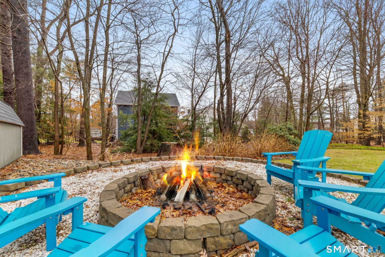Gorgeous colonial in low traffic neighborhood atrium window entry and a south facing wrap around front porch with a cedar shiplap ceiling sets the tone before you even step inside. The main level is warm and elegant with 9 foot ceilings, rich hardwood floors, detailed moldings, and classic architectural character throughout. The foyer opens to a sun filled front office and formal dining room with oversized windows and bay windows that make every space feel bright and inviting. At the heart of the home, the eat in kitchen offers granite countertops, stainless steel appliances, a center island, distinctive cabinetry, and a spacious dining area perfectly positioned for everyday living and easy entertaining. Just beyond, the family room impresses with a Palladian window, a floor to ceiling wood burning fireplace, and access to the expansive wrap around deck. Upstairs, the hardwood floors continue into a spacious primary suite with a charming five sided bay sitting area, walk in closet, and updated full bath with quartz counters, along with two additional bedrooms, a full bath, and convenient second floor laundry. Outside, the private lightly wooded yard creates a peaceful backdrop for summer days by the above ground pool, evenings around the firepit, and plenty of room to relax, play, or host. A special offering with style, comfort, and space in a beautiful neighborhood setting.