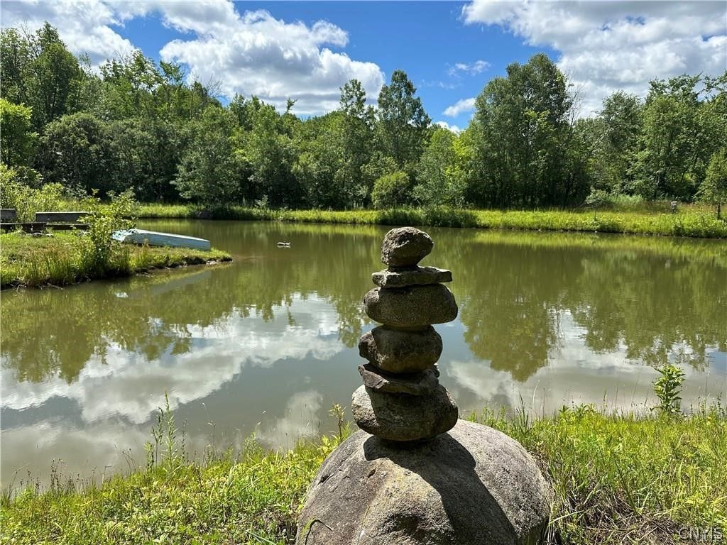 This private, scenic oasis awaits its new owner. Tucked away off the road, this 6-acre parcel with a camp, out buildings, and a beautiful pond offers a beautiful setting to get away from it all. As you drive in you will notice the pond to your right. A beautiful place to sit and relax while nature entertains you. As you continue in the unique camp with artistic flair will be the perfect place to unwind. Sit on the back deck as you can look down onto the creek below. Inside there is a dining room, kitchen and a spacious living room with large windows to invite the outside in. Pull downstairs allow for a place to sleep up above with room for 3 single beds. Whether you're inside with a book or by the fire pit, the setting invites relaxation and adventure. There are outbuildings that offer storage, and places to keep wood for the wood stove inside the camp and firepit outside. The camp comes fully furnished. The seller will only remove personal items. While the property has electricity in place, it offers a more rustic experience with no water service, perfect for those seeking a back-to-basics escape. Located directly on ATV trails, it's ideal for outdoor enthusiasts, hunters, or anyone who loves trail riding, hiking, or exploring the woods. This rare find combines privacy, natural beauty, and recreational opportunity-a one-of-a-kind camp for your weekend escapes or seasonal adventures.